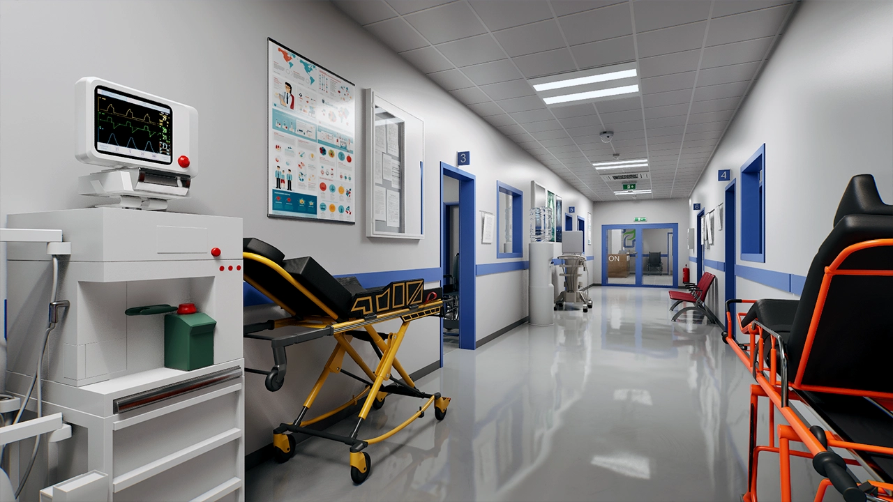 Environments are the realistic 3D worlds in which courses take place. DART 2.2 introduces eight new environments including a neighborhood with multiple furnished houses, an industrial yard, hospital, and transportation terminal. In addition, environments now have settings that allow lighting to be controlled and doors and gates opened and closed.